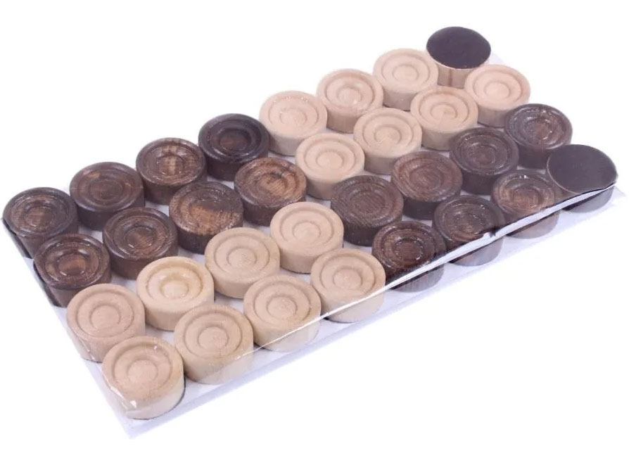Качественные фишки для нард из Армении. Изготовлены из натурального дерева бук и имеют размер 24 мм. Для сохранности игрового поля и более приятной игры снизу на фишках имеется мягкая подкладка. Фишки подойдут к нардам размером 40х40 см.