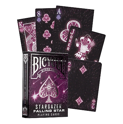 Falling Star – новая колода от Bicycle, вышедшая в линейке Stargazer. Линейка и до этого была весьма разнообразной, беря за основу для колод разнообразные космические явления, играясь при этом с цветовой гаммой. В данной колоде основной темой служит, как понятно из названия, "падающие звезды". Bicycle услышали ваше желание и выпустили очередное отличное пополнение в линейку, еще и в роскошном фиолетовом цвете.
