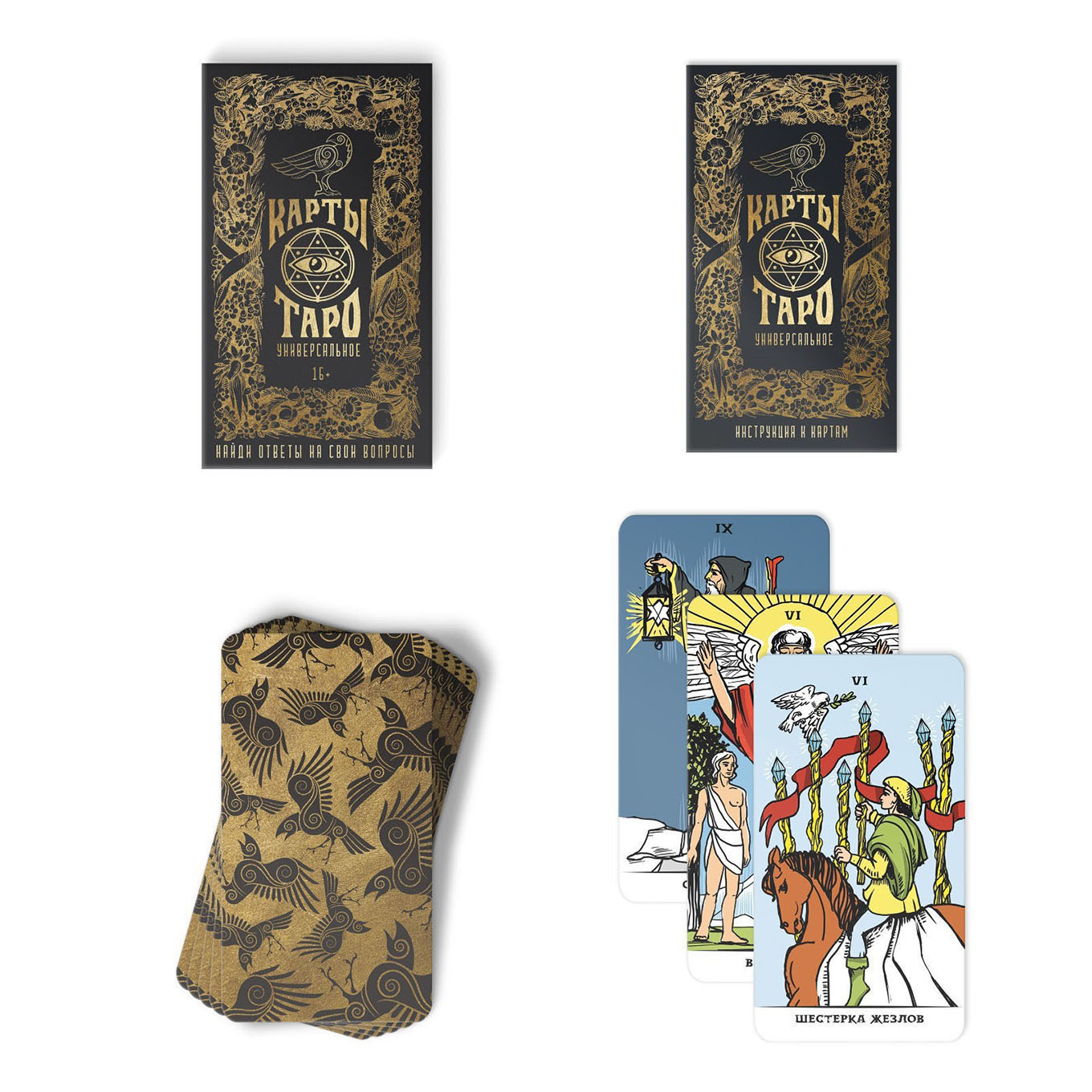 У любого из нас, вне зависимости от периода в жизни, могут появиться вопросы, на которые не так просто найти ответ. И иногда можно обратиться к гаданию на картах таро! Данный набор карт идеально подойдет для того, чтобы попробовать себя в этом занятии. Дизайн этих карт, пожалуй, самый классический, созданный Райдером-Уэйтом еще в 1910 году. Окунитесь в мир эзотерики с этими картами таро!