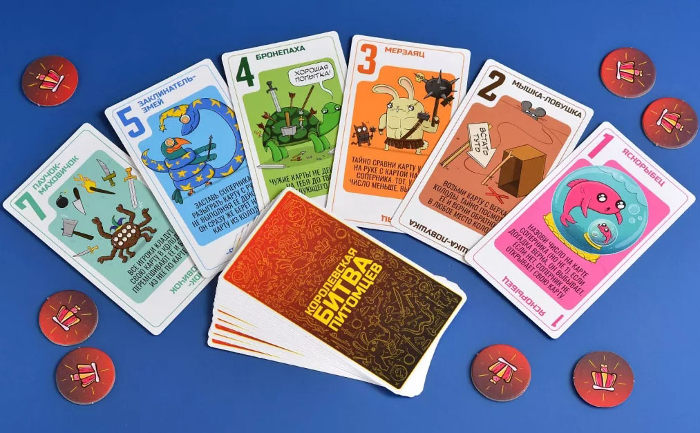 "Королевская битва питомцев" - забавная и простая игра, в которой победителя определяет одна карта. Каждый раунд - это столкновение коварных способностей и чисел. Крадите карты, устраняйте соперников и устраивайте хаос на поле боя.