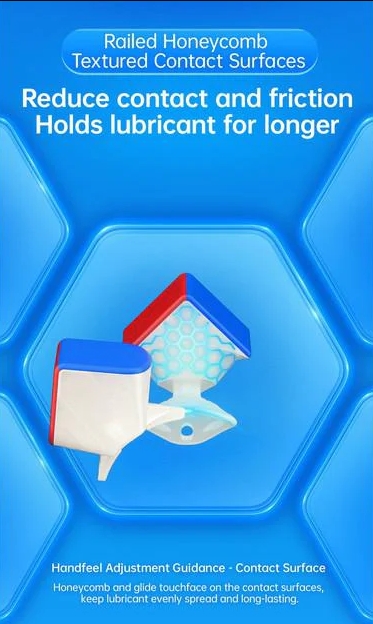Для настройки вам будет доступно 3 положения центральной гайки. Для новичков этого достаточно. А для лучшей смазки на внутренних поверхностях деталей имеются бороздки в виде медовых сот. Так смазку дольше задерживается в кубике и равномернее распределяется.