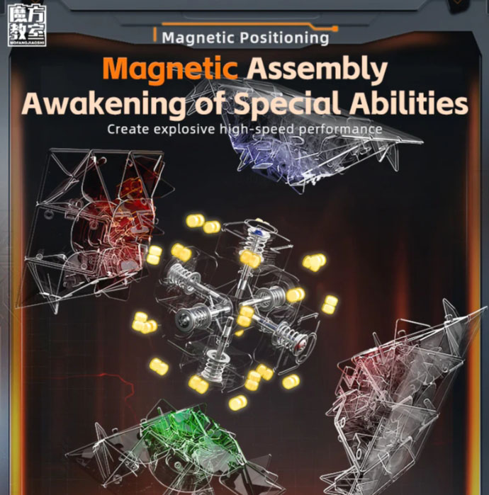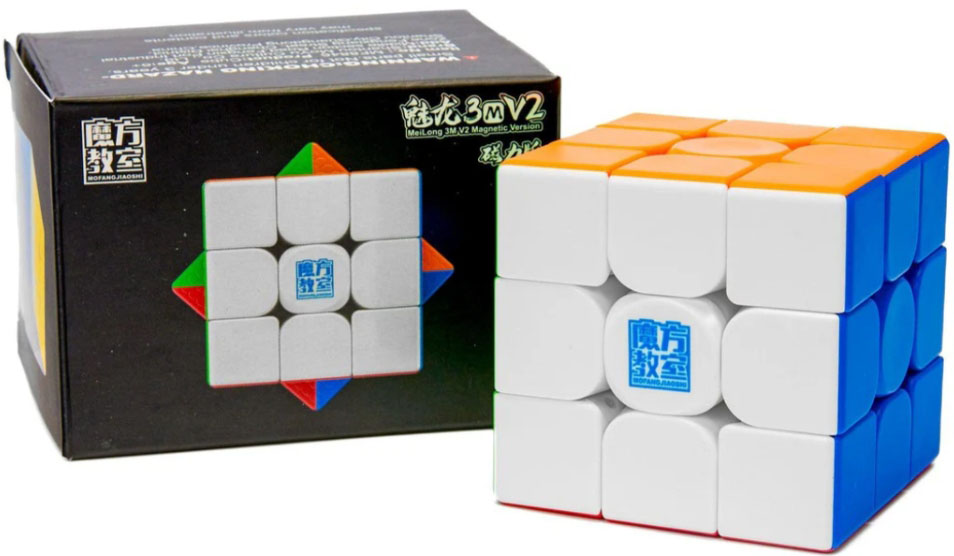 Всем хорошо известна бюджетная версия «Кубик 3х3 MoYu MeiLong 3M магнитный». Теперь данная версия получила обновление. Кубик 3х3 MoYu Meilong 3M V2 магнитный получил улучшенное строение крестовины и более слабые магниты. Система настройки осталась всё также простой и понятной. Настраивается он при помощи винта в центре кубика.