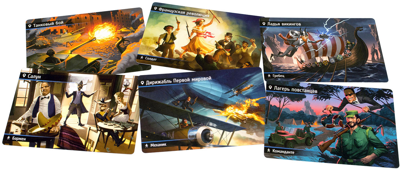 Выбираем комплект карт, раздаем каждому по одной. Случайному игроку достается роль шпиона под прикрытием, остальные будут агентами, которые должные его вычислить. А вычислить его очень даже можно. Ведь шпион, хоть и смышлен, но переброски во времени не проходят даром. Оказавшись в новой эпохе, шпион испытывает полную дезориентацию и не может понять, куда он вообще попал. Возможно, дело в устаревшей модели машины времени. Агенты используют более продвинутые аппараты и поэтому после перемещения прекрасно ориентируются.