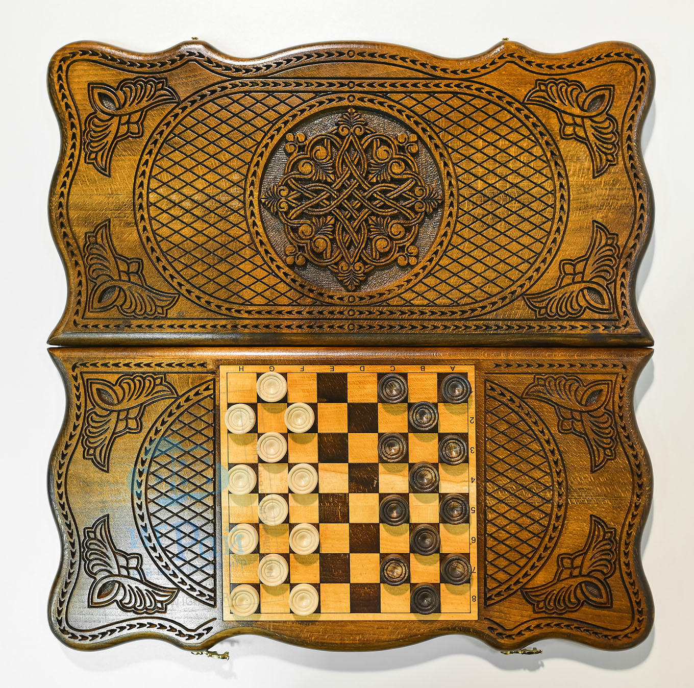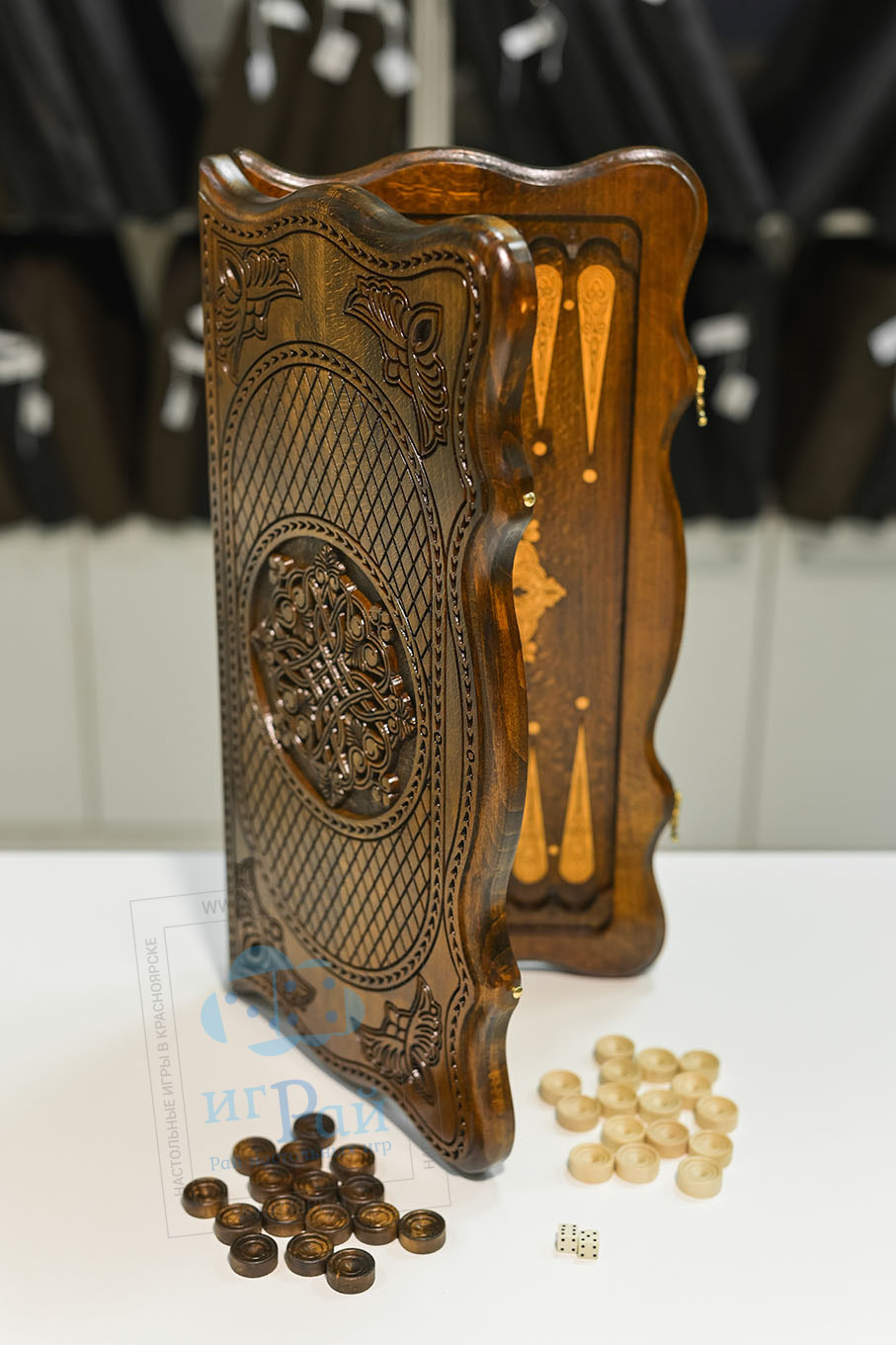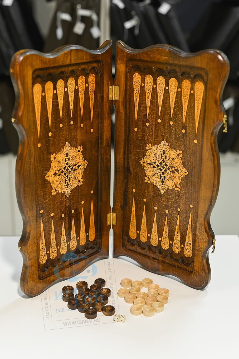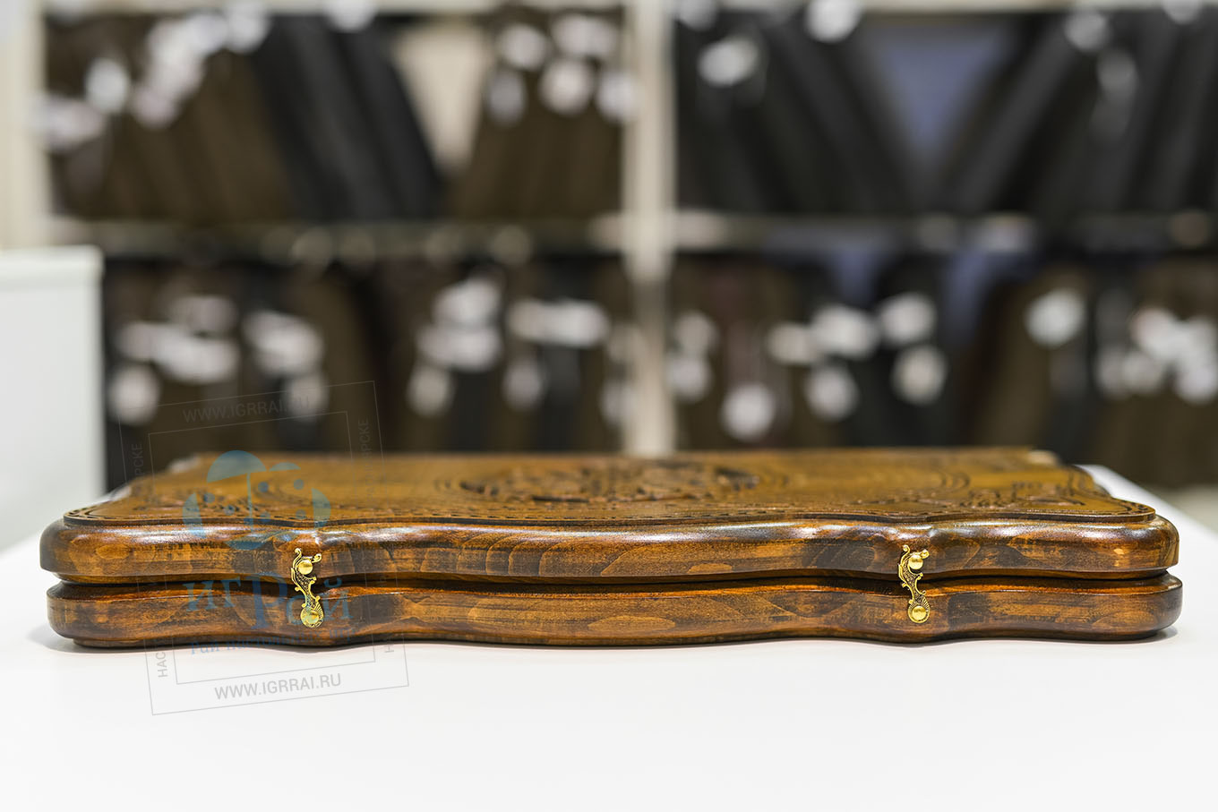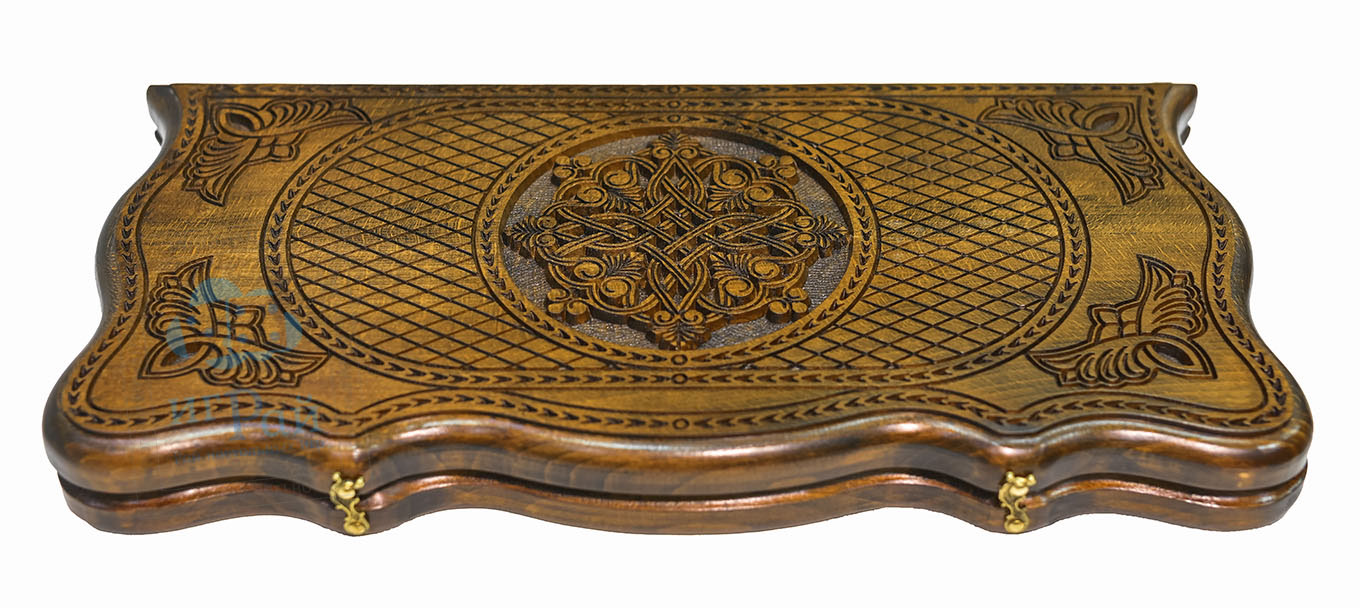 Хотите приобрести компактные нарды, да такие, чтобы не стыдно было похвастаться? Тогда присмотритесь к этим качественным армянским нардам с резным узором. Они имеют отличный внешний вид, что внутри, что снаружи. Снаружи сразу виден резной узор и красивые замки, а внутри - бронзовые литые петли и вставка из светлого дерева с похожим узором.