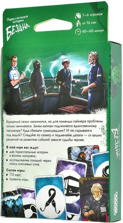 В настольной игре "Параллельные истории: Бездна" вам предстоит взять на себя роль одного из членов экипажа и прожить его жизнь на корабле. Выясните, что и происходит, и останьтесь в живых. Но будьте внимательные, любая зацепка важна, как никогда.