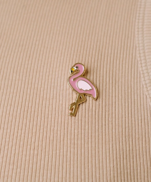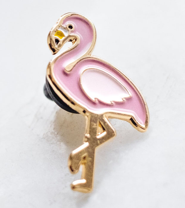 Милый и красивый розовый Фламинго красуется на этом металлическом пине.