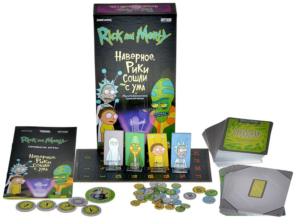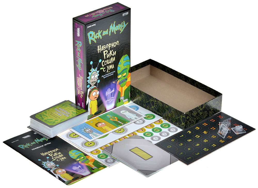 «Рик и Морти: Наверное, Рики сошли с ума» - увлекательная карточная настольная игра, в сюжетную основу которой легла одноименная серия мультсериала. Посещайте различные локации, проворачивайте хитрые комбинации, и наберите больше всех победных очков!