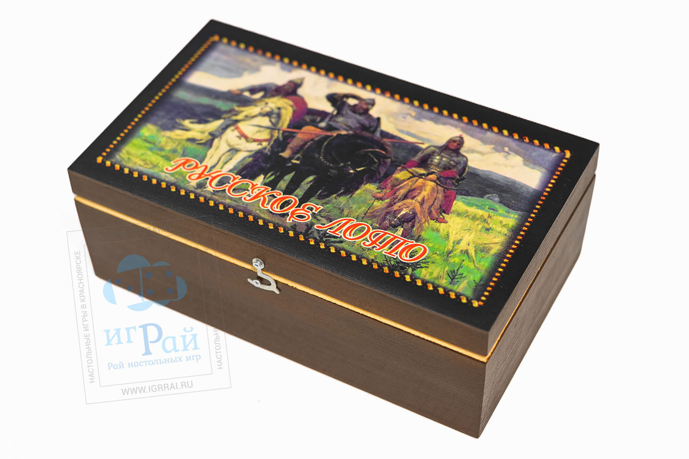 Три Богатыря - классические персонажи нашей культуры. Они символизируют силу, мудрость, отвагу. Именно этими персонажами украшена шкатулка, в которой вас ожидает замечательное Русское лото с деревянными боченками!