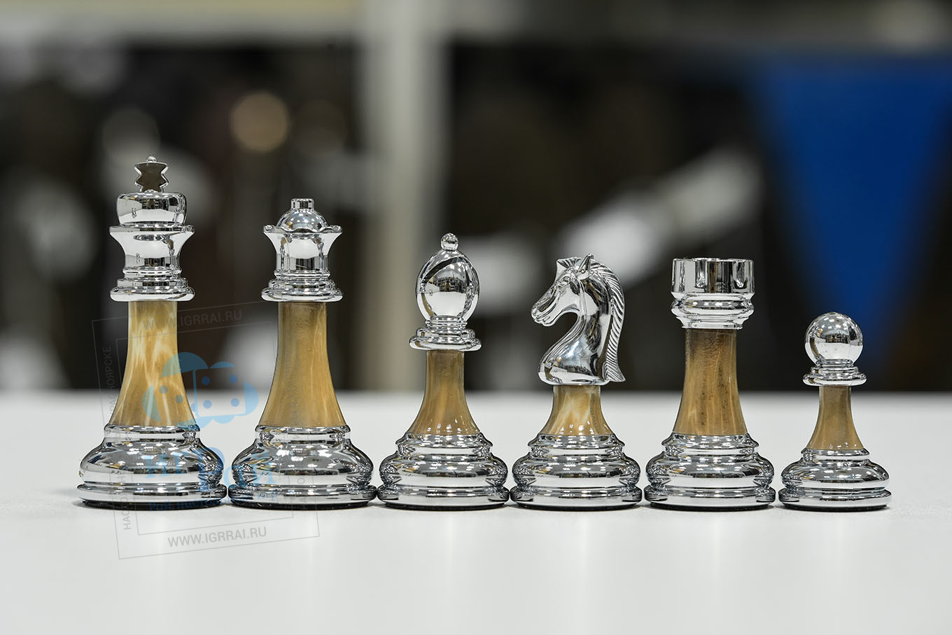 Необычные шахматные фигур из композитной смолы с металлическими элементами. Вызывающий внешний вид в совокупности с качественным исполнением придаёт этим фигурам премиальный вид. В каждой фигуре имеется утяжелитель для приятной игры. Они отлично будут смотреться на металлической, стеклянной и даже на деревянной досках.