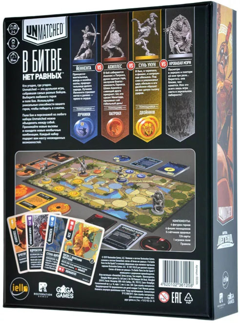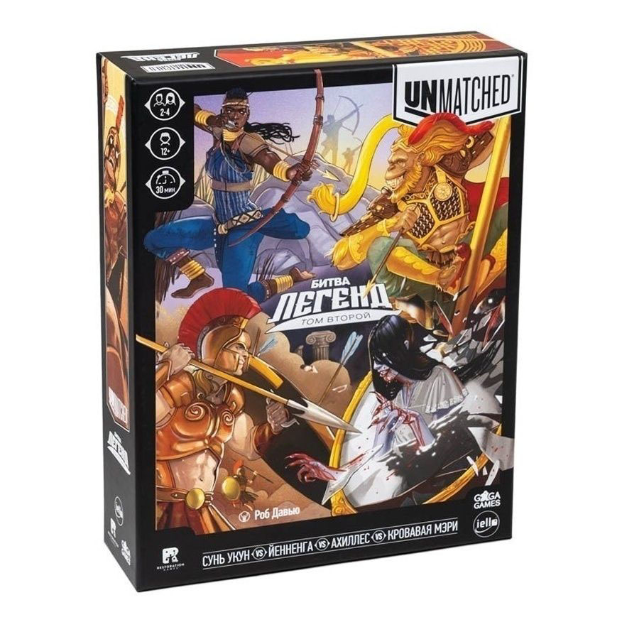 «Unmatched: Битва легенд. Том второй» - очередная коробка из серии настольных файтингов Unmatched! На этот раз в бою столкнулись новые 4 легендарных героя: Африканская воительница Йенненга, знаменитый персонаж мифологии Ахиллес, Сунь Укун, он же король обезьян, и ужасающая Кровавая Мэри! Да, состав весьма разномастный, все персонажи тут весьма яркие, что по лору, что по своим механикам. «Битва легенд. Том второй» продолжает развивать основную задумку Unmatched, а именно настольных боев с ассиметричными персонажами. Например, Сунь Укун способен создавать своих клонов и менять форму, Ахиллес же, сражается со своим верным другом Патроклом, а Кровавая Мэри – завязана на комбинациях со значением 3. Новая коробка Unmatched также радует нас новыми механиками, а именно возвышенностями, с которых становится выгоднее атаковать, а также некоторые карты можно разыграть как двойную атаку! «Битва легенд. Том второй» вышел отличным продолжением серии, играйте этот бокс отдельно, или же смешайте его с другими играми Unmatched.